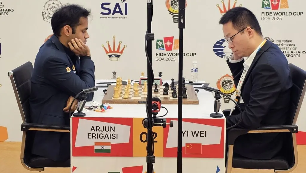 वृत्तसंस्था/पणजी ग्रँडमास्टर अर्जुन एरिगेसीला बुधवारी येथे टायब्रेकर सामन्यांच्या पहिल्या संचात चीनच्या वेई यीकडून 1.5-2.5 असा पराभव पत्करावा लागल्याने तो फिडे बुद्धिबळ विश्वचषकातून बाहे
