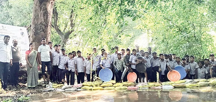 वाठारमध्ये श्रमदानातून वनराई बंधारा बांधणी; जलसंधारणासाठी ग्रामस्थांचा पुढाकार