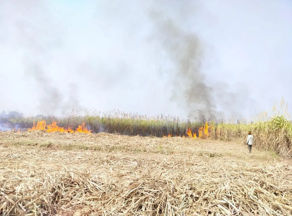 खानापूर : खानापूर तालुक्यातील हलशीवाडी येथे शनिवारी दुपारी दोनच्या सुमारास अचानक उसाला आग लागून 25 एकरांतील ऊस जळून खाक झाल्याने तसेच शेतात ठेवण्यात आलेले पाईप, स्प्रिंकलर व पंपसेटच्या केब