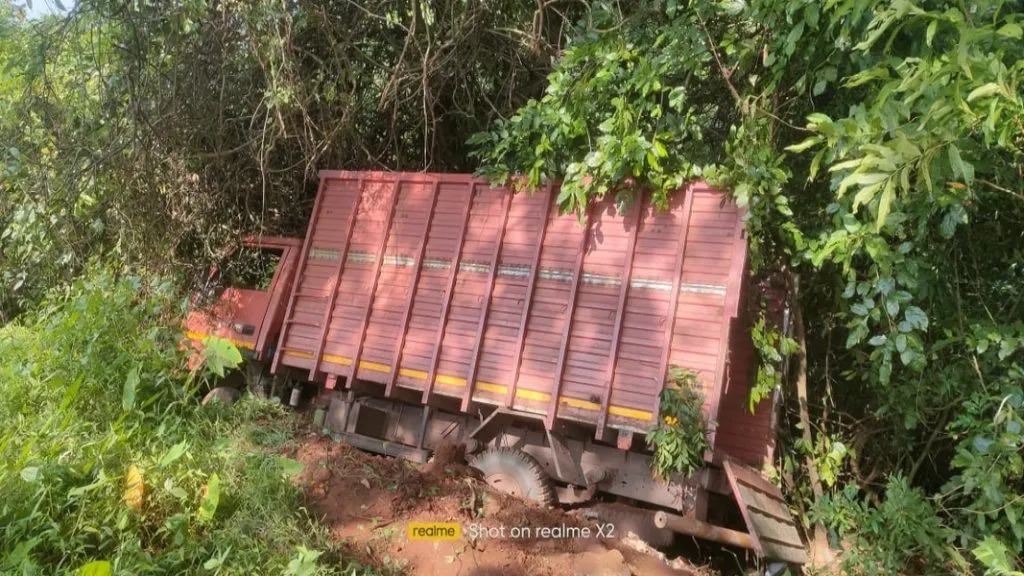दोडामार्ग- विजघर राज्यमार्गावरील घटना (साटेली भेडशी प्रतिनिधी) दोडामार्ग- विजघर राज्यमार्गावरील आवाडे वेळपय नाल्यानजीक मालवाहतूक आयशर टेम्पो चालकाचे गाडीवरील नियंत्रण सुटल्याने रस्त्