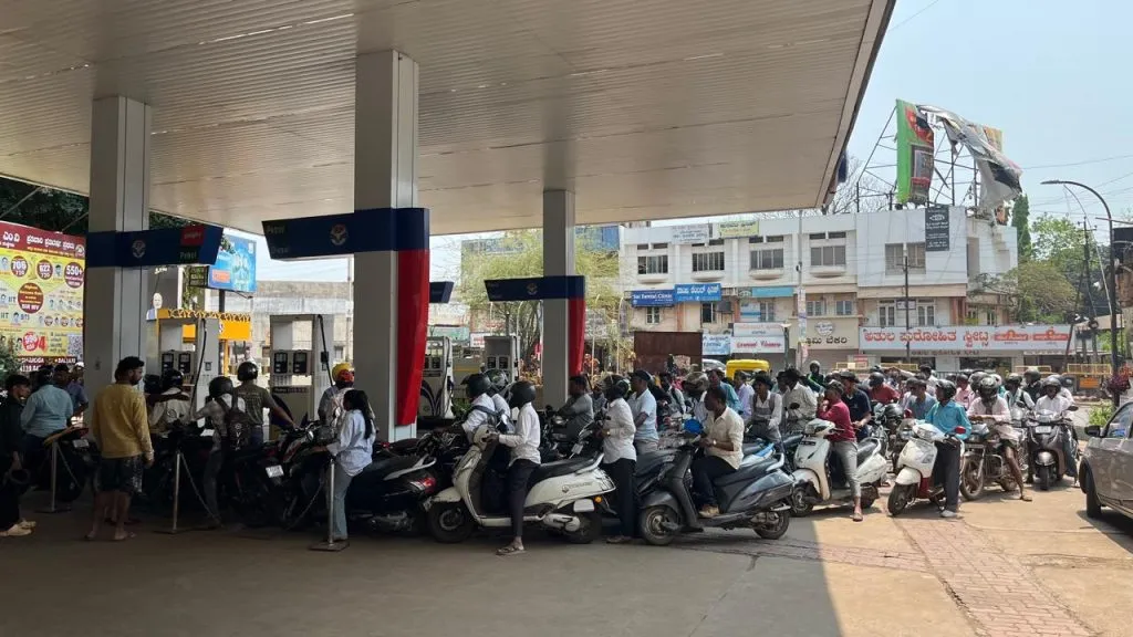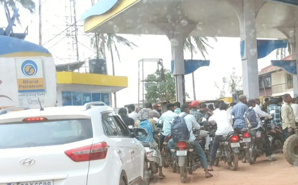 खानापूर : सध्या सुरू असलेल्या युद्धाच्या धर्तीवर खानापूर तालुक्यात पेट्रोल टंचाईची अफवा सोमवारपासून पसरली होती. मंगळवारी सकाळपासूनच शहरातील पेट्रोलपंपांवर पेट्रोलसाठी वाहनांची प्रचंड