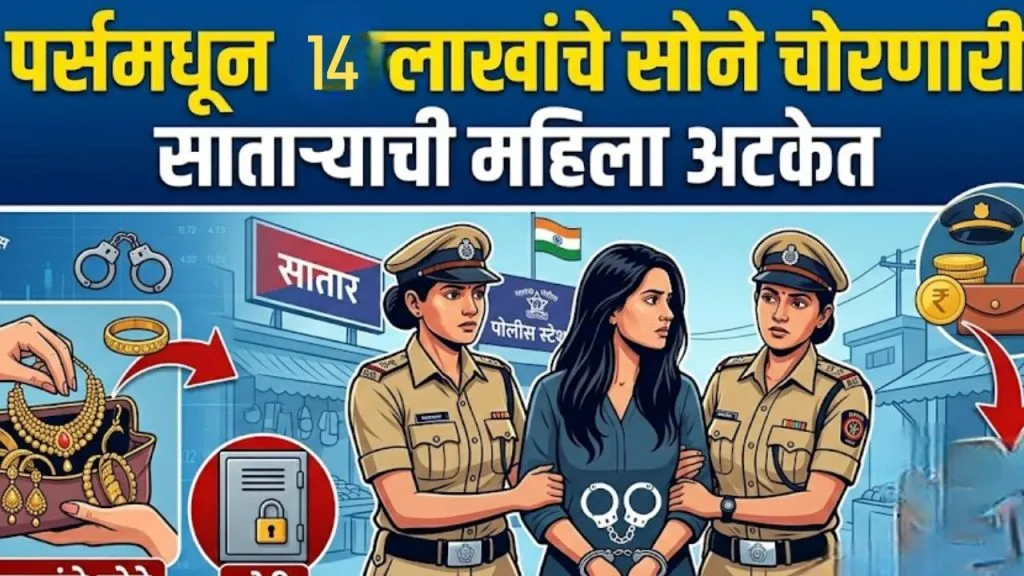 पर्समधून १४ लाखांचे सोने चोरणारी साताऱ्याची महिला अटकेत कराड -बसस्थानकातील गर्दीचा फायदा घेत प्रवाशाच्या पर्समधील सुमारे १४ लाख ६१ हजार ८५० रुपयांचे सोन्याचे दागिने चोरी करणाऱ्या संशयि