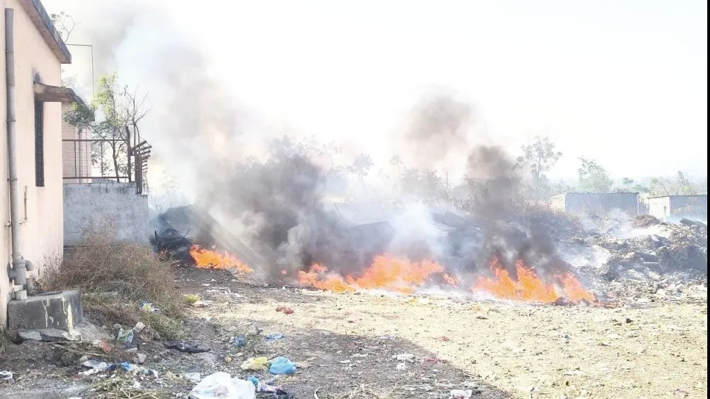 हातकणंगले तालुक्यातील शिरोलीत आग पुलाची शिरोली : नागाव (ता. हातकणंगले) येथील प्राथमिक आरोग्य उपकेंद्राला लागून असलेल्या घनकचरा डेपोला आग लागून परिसरात धुराचे लोट पसरल्याने नागरिक हतबल झा