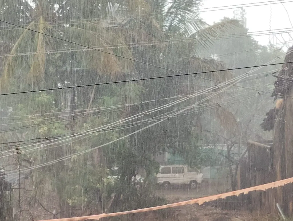 हिंडलगा : मंगळवार दि. 24 रोजी दुपारी 4 वा. विजांच्या कडकडाटांसह गारांचा वादळी पाऊस जवळजवळ एक तास पडला. या भागातील हा पहिलाच पाऊस असल्याने जमीन ओली होताच सर्वत्र वास दरवळला. संध्याकाळी आकाशात का