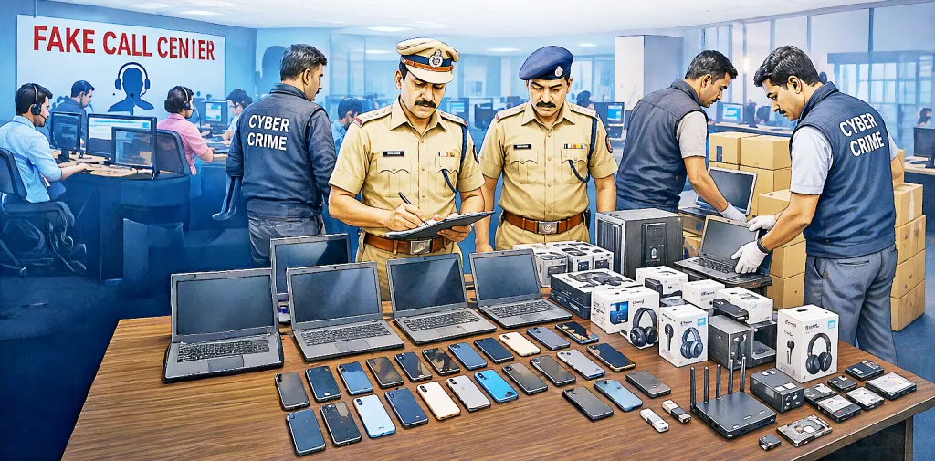 सात जणांना अटक : 23 लाखांचे साहित्य जप्त पणजी : सायबर गुन्हा विरोधी विभागाने करमळी येथे केलेल्या कारवाईत बनावट कॉल सेंटरचा पर्दाफाश केला आहे. या प्रकरणात सात संशयितांना अटक केली असून लॅपटॉप, म