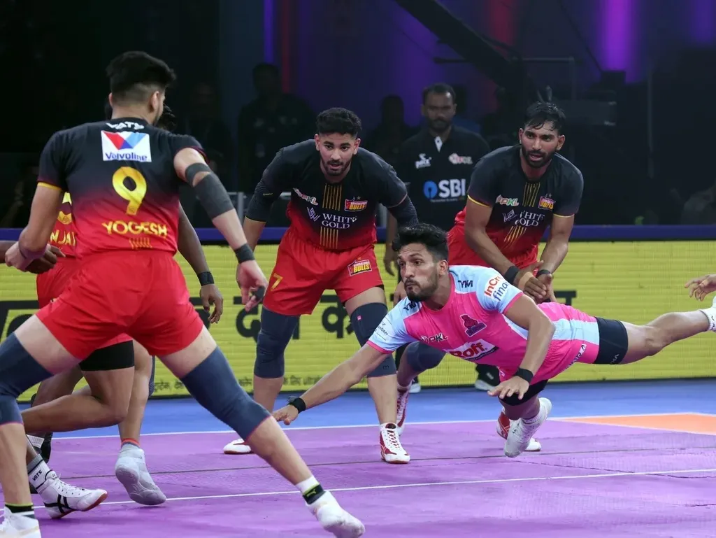 वृत्तसंस्था/ नवी दिल्ली 2025 च्या प्रो-कब•ाr लीग स्पर्धेतील दिल्लीच्या टप्प्यात खेळविण्यात आलेल्या सामन्यात अष्टपैलू कामगिरीच्या जोरावर बेंगळूर बुल्सने जयपूर पिंक पँथर्सचा 47-26 अशा 21 गुणांच्
