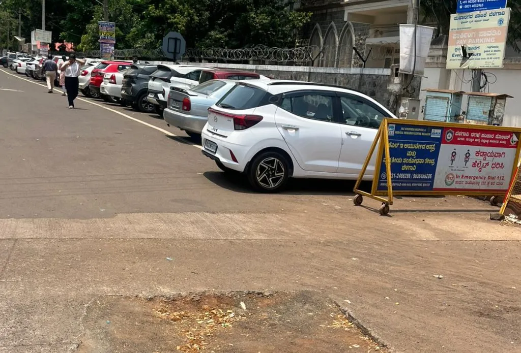 बेळगाव : लिंगराज कॉलेज व पोलीस आयुक्त कार्यालयाकडे जाणाऱ्या मार्गावर मोठा खड्डा पडल्याने वाहनधारकांना अडचणींचा सामना करावा लागत आहे. पोलीस आयुक्त कार्यालय असल्याने पोलीस कर्मचारी व नागर