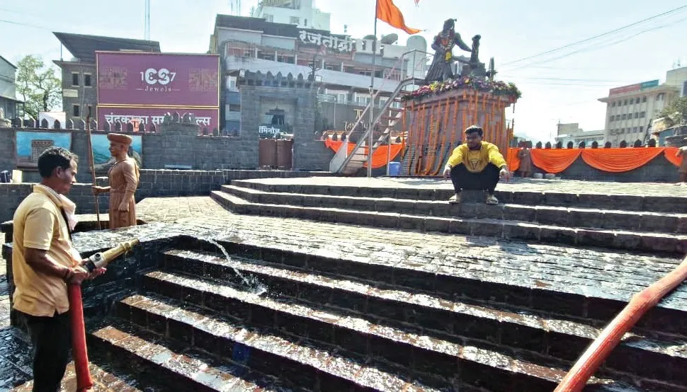 पालिकेच्या टँकरने शिवतीर्थ परिसर धुवून काढला सातारा : पालिकेचा निकाल लागल्यानंतर विजयी झालेल्या उमेदवारांनी छ. शिवाजी महाराजांना अभिवादन करण्यासाठी शिवतीर्थ येथे आर्वजून हजेरी लावली हो