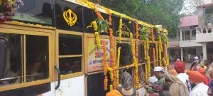 साधसंगतगुरुद्वारासमितीतर्फेबसचेस्वागत: बसच्यामार्गावरफुलांच्यापायघड्या बेळगाव : शीखांचे नववे गुरु तेजबहाद्दूर साहिबजी यांच्या 350 व्या बलिदान वर्षानिमित्त आसामच्या डुब्री येथून दोन ब