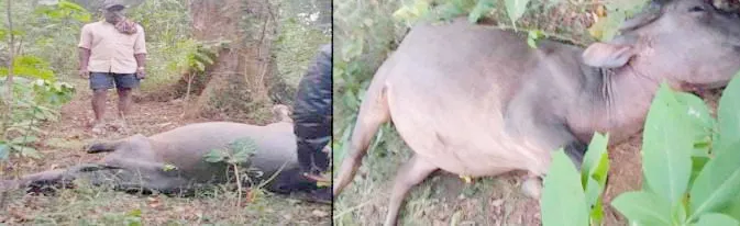दांडेलीतालुक्यातीलहरगाळीयेथीलघटना कारवार : वाघाच्या हल्ल्यात दोन म्हशी ठार तर अन्य दोन म्हशी गंभीर जखमी झाल्याची घटना सोमवारी दांडेली तालुक्यातील हरगाळी येथे घडली. नेहमीप्रमाणे वन्यप्