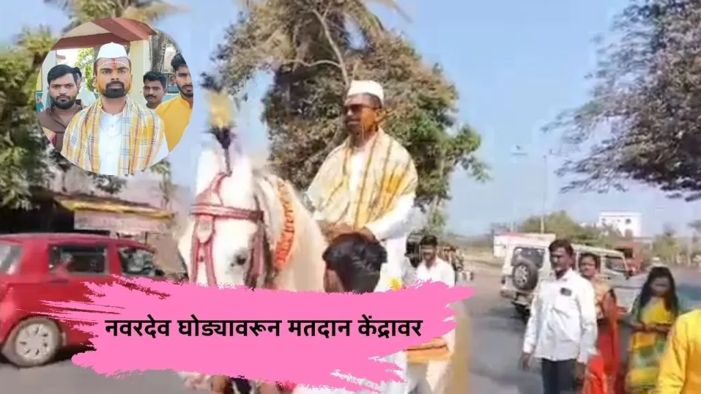 Satara News : मतदानाचा हक्क बजावण्यासाठी हळदीच्या अंगाने घोड्यावरून नवरदेव मतदान केंद्रावर