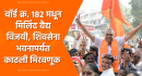मुंबई महापालिका निवडणुकीची मतमोजणी सुरू आहे. महापालिका वॉर्ड क्र. 182 चा निकाल समोर आला असून शिवसेना (उद्धव बाळासाहेब ठाकरे) गटाच्या उमेदवाराने बाजी मारली आहे. वॉर्ड क्र. 182 मधून मिलिंद वैद्य यांनी विजय मिळवला आहे. विजयानंतर शिवसैनिक आणि मनसैनिकांनी विजयाचा गुलाल उधळत जल्लोष व्यक्त केला. (फोटो – सचिन वैद्य)