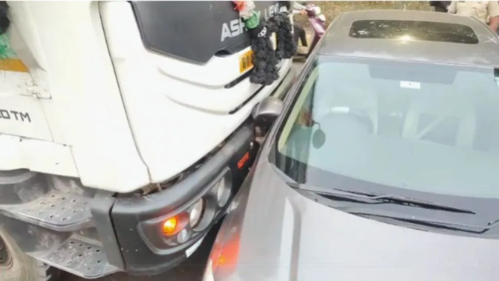 Miraj News : मिरजमध्ये विचित्र अपघात; खडीवाहू डंपरने होंडा सिटीला दिली जोरदार धडक