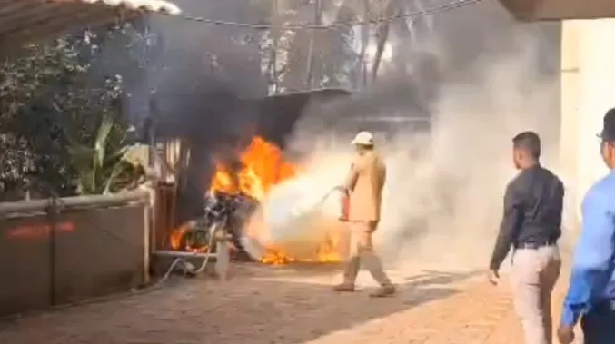 कार सर्व्हिस सेंटरमध्ये भीषण आग
