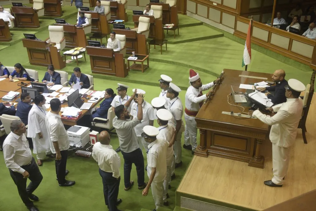 सभापतींसमोरील हौदात विरोधकांचा ठिय्या