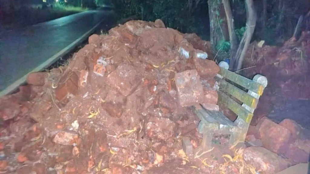 निरवडे बस स्टॉपवरील बेंचवर अज्ञाताने ओतला मातीचा ढीग