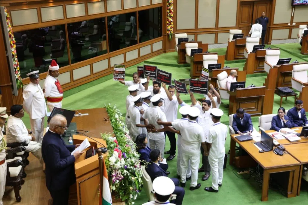 राज्यपालांच्या अभिभाषणावेळी घातला गोंधळ : ‘शेम शेम’च्या घोषणांनी सरकारचा केला निषेध,मार्शलांनी सातही विरोधी आमदारांना काढले बाहेर पणजी : राज्यपाल पुसापती अशोक गजपती राजू यांच्या काल सोमवारी विधानसभेतील अभिभाषणाच्या वेळी विरोधी पक्षनेते युरी आलेमांव यांनी हडफडे येथे 25 जणांचे बळी गेलेल्या ‘बर्च’ अग्नितांडवाचा ज्वलंत विषय मांडला. त्यांच्यासह इतर विरोधी आमदारांनी हातात फलक घेऊन सभागृहात ‘शेम शेम’च्या [...]